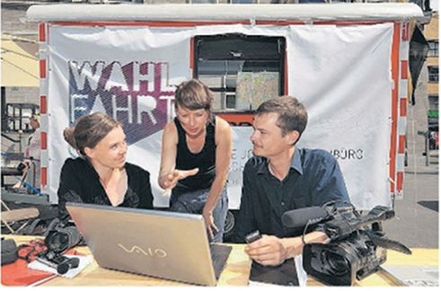 Sowas – noch gar nicht losgefahren, schon in der Presse. Pünktlich zum Wahlfahrt-Start am Sonntag, dem 9. August 2009, veröffentlichte der Tagesspiegel einen Sammelartikel zu neuen Formen der Wahlberichterstattung – darin auch wir.