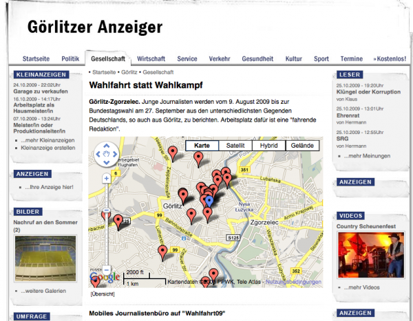 Unsere erste Vorankündigung im Görlitzer Anzeiger war recht erfolgreich: Kaum war der Artikel in der Zeitung, kamen die ersten Görlitzer mit Notizzetteln, Büchern und Meinungen zum Wahlfahrt09-Stand. Jede Menge Material also – und die Erkenntnis, dass Lokalzeitungen immer noch ein sehr effizientes Mittel sind, Menschen zu erreichen.