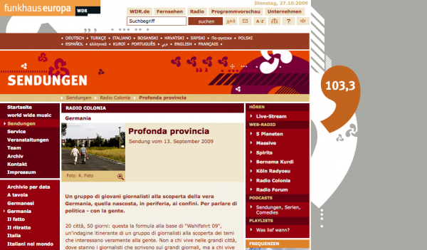 Si, claro, wir können auch italienisch! Zumindest Malte Göbel, der hier auf Radio Colonia ein souveränes Interview für die Italiener gibt. Profonda Provincia!